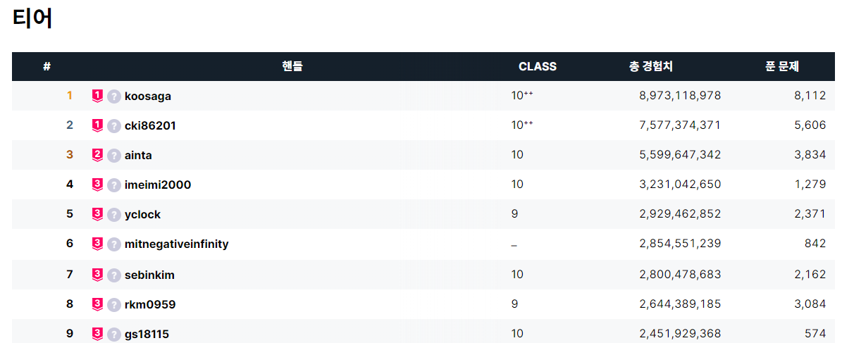 클래스라고 해서 프로그래머스의 스킬체크랑 비슷한거 같은데 역시 백준이 문제수도 많고 하다보니 레벨이 무려 10까지 존재한다. 이걸 토대로 공부를 해도 좋을 것 같다.